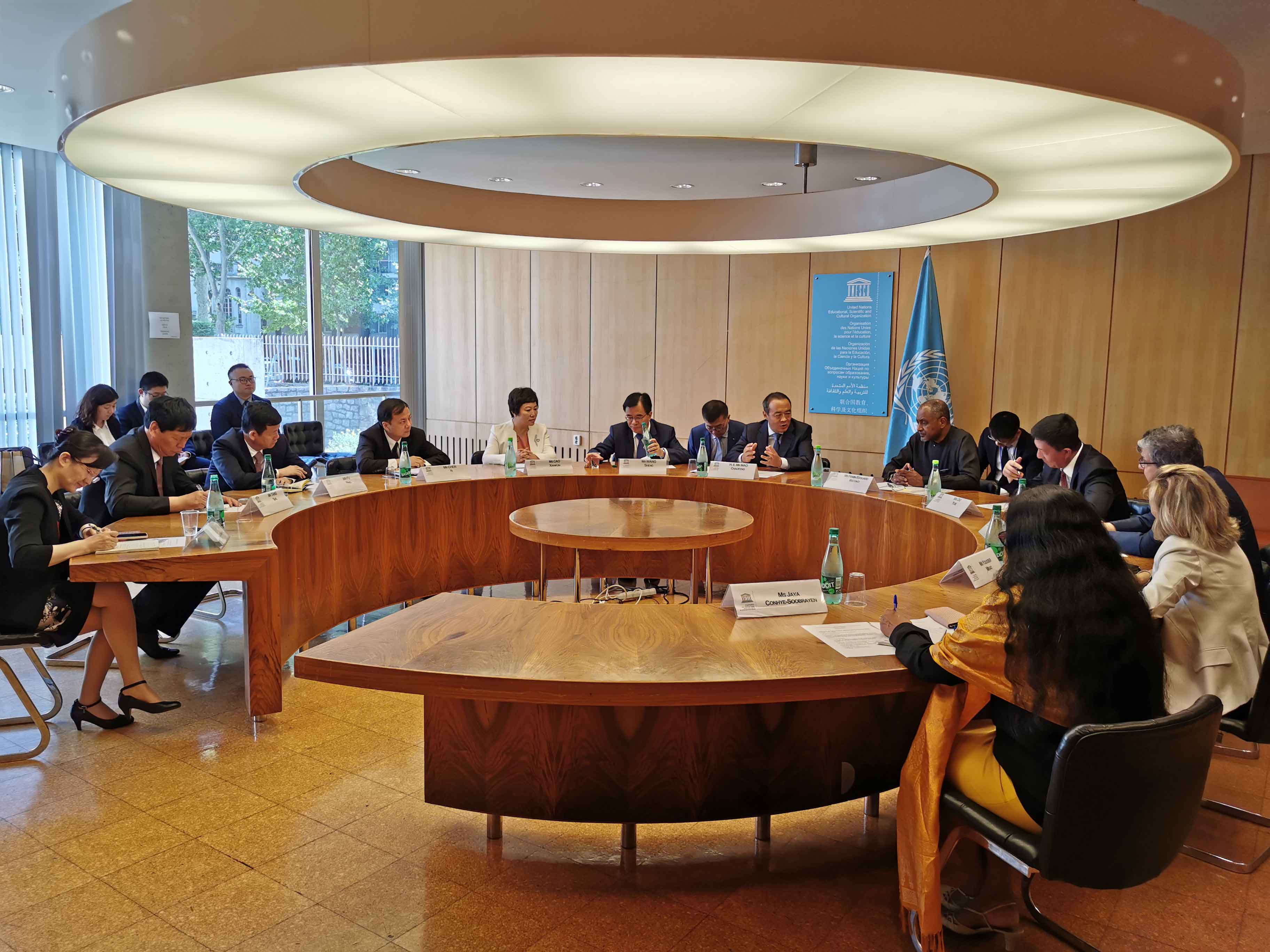 输联合国教科文组织总干事博科娃女士在巴黎教科文组织总部…